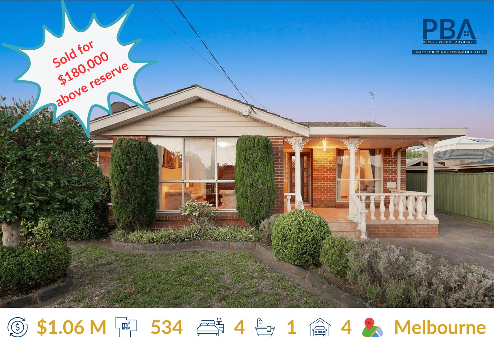 Outcome: Sold on auction day $60,000 above reserve
